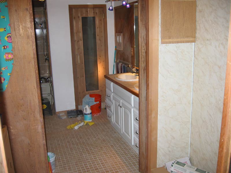 Over the winter 0f 2003 I did a major remodel of my landlady's bathroom. We remove a shower stall and replaced it with a laundry tub, redid most of the ceiling to remove soffits, redid most of the lighting, added a fan, replaced the vanity and replaced the tile floor. Unfortunately, I did not take any "before" photos to show the changes.