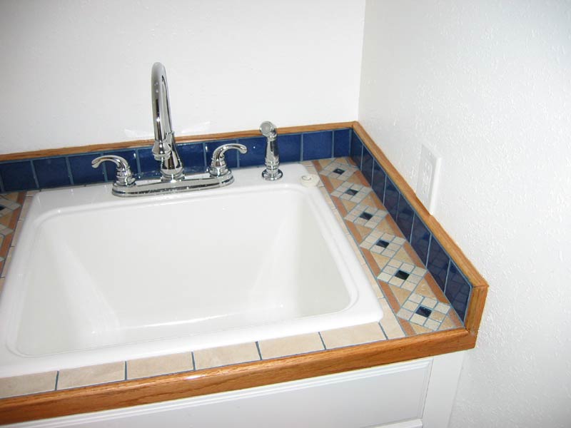 This is the new Laundry tub. Note that we dropped a tub into a kitchen base and added a tile countertop.