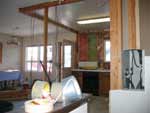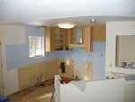 Installation has been completed of the kitchen cabinets. We've move out the door to the deck to allow for later installation of extra insulation and new siding.