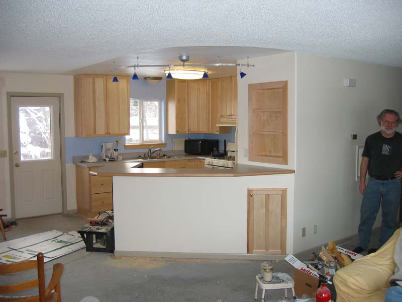 Over the winter I did a major kitchen remodel of a neighbor. We gutted the old kitchen, removed two walls, replace the kitchen window, added a walk in pantry and a breakfast bar.